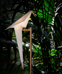 Guarda in alto, nella luce soffusa, segui il suono svolazzante e le scintille del movimento. Un uccello è in equilibrio con grazia su un alto trespolo di metallo, bello e orgoglioso, un barlume oscillante di luce calda… eppure sei dentro, dopo che la luce del giorno è svanita, sotto l’incantesimo del Perch Light Floor!