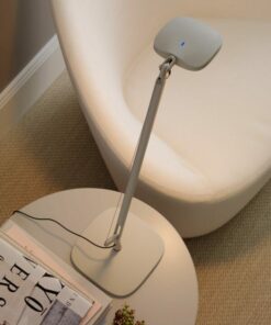 Lampada da tavolo LED con montatura composta da una testa e aste strutturali in alluminio verniciato