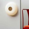 Lampada a parete o soffitto a luce diffusa dimmerabile, con montatura in metallo galvanizzato e diffusore in vetro soffiato in borisilicato.