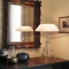 Lampada a sospensione a luce diretta e diffusa dimmerabile. Montatura in metallo cromato e diffusore in polietilene. E’ possibile acquistare separatamente un disco di chiusura opzionale in policarbonato con tige telescopica e tappo di ancoraggio. Cavo di sospensione in acciaio, cavo di alimentazione trasparente. Rosone in materiale termoplastico
