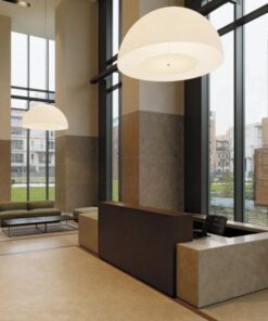 Lampada a sospensione dal grande impatto scenico grazie ai due diametri disponibili (da 120 e 160 centimetri). Diffusore su richiesta anche argento e oro. E’ possibile acquistare separatamente un disco di chiusura inferiore per coprire la vista delle sorgenti luminose.