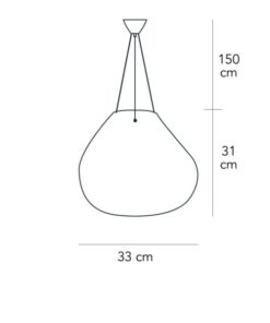 Lampada a sospensione dal diffusore in vetro soffiato trasparente dall’effetto iridiscente e dalla forma che ricorda le bolle di sapone. È disponibile in due forme.