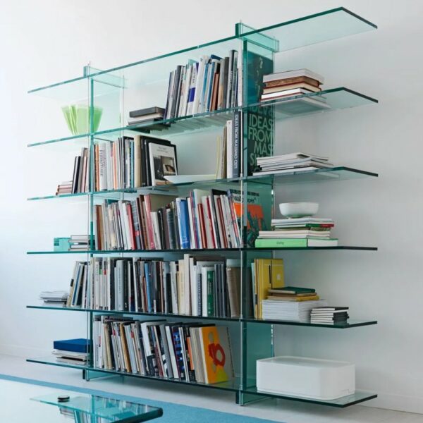 Tavolo in vetro firmato Renzo Piano che, si misura per la prima volta, con il campo del design progettando per FontanaArte una produzione coordinata di sistemi d’arredo in un unico materiale: il vetro, simbolo della storia produttiva dell’azienda. Una collezione di grandissimo pregio, composta da tavolo, libreria e consolle.