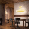 Lampada da terra, in vetroresina plasmata a mano, un incontro suggestivo tra artigianalità e materia. Un oggetto sinuoso che si illumina completamente, come se provenisse da mondi lontani, per abitare lo spazio con gentilezza. Lampada da terra dal corpo e diffusore in vetroresina ecologica lavorato a mano, struttura interna in metallo (rimovibile per la sostituzione delle lampadine), dimmer.