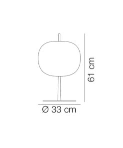 Lampada da tavolo, un contrasto di forme e materiali perfettamente calibrato. L’ asta in metallo, netta e asciutta, attraversa il morbido diffusore in vetro. Kushi nella versione XL