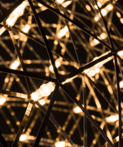 Le luci Raimond: sfere perfette di ingredienti matematici punteggiate da minuscole luci LED. Il designer Raimond Puts non era solo affascinato dalla forma della cupola geodetica, ma anche dal mistero dei numeri primi. Non è un caso che la dimensione di tutte le lampade Raimond assomigli a un numero primo. Il risultato di perfezione matematica, che porta il cielo notturno stellato nella tua casa. Compatibile con il nostro interruttore a parete wireless, per un oscuramento facile e veloce che ti dà il pieno controllo sull’emissione luminosa.