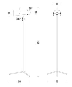 La lampada è composta da tubi di metallo piegati, verniciati in nero. Parti della struttura sono in metallo cromato. Diffusore in alluminio verniciato nero, bianco nella parte interna.