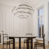 Lampada a sospensione, realizzata in diverse versioni attraverso un’innovativa tecnologia per l’accoppiamento degli estrusi, Ellisse garantisce un’illuminazione diffusa diretta e indiretta grazie al LED ospitato nella struttura senza risultare invadente. Il design è lineare e contemporaneo, mentre un’elegante base in marmo nero diventa piedistallo per la versione da terra. Disponibile in diverse versioni: major, minor, double, triple e mega a luce diffusa diretta o indiretta, in estruso di alluminio in diverse versioni con diffusore opalino. Ellisse Major è disponibile anche nella versione da terra o da parete ed è dotata di una base in marmo nero o di un accessorio gancio a muro.