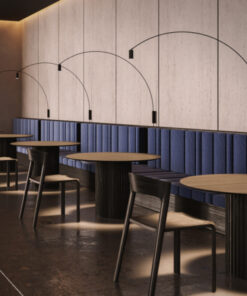 Novità della collezione, Fox Wall esalta la sua estetica essenziale e la sua funzionalità: l’arco orientabile in acciaio verniciato nero opaco dal design pulito e senza tempo consente ampi movimenti permettendo di interagire con lo spazio, mentre lo spot cilindrico con il filtro antiriflesso opzionale permette di orientare la luce in base a ogni esigenza. La luce è calda e diffusa e si adatta a qualsiasi spazio indoor.