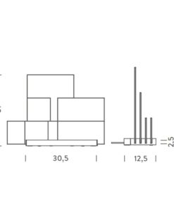 Disponibile in due versioni, base verniciata bianca e diffusori colorati e base verniciata nera con diffusori colori o neutri ed uno rosso. Dimmerabile con interruttore touch dimmer on board.