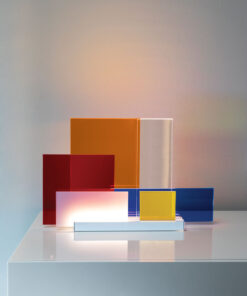 La base presenta 4 binari dove posizionare liberamente i differenti diffusori per creare infinite configurazioni di luce e trasparenze.