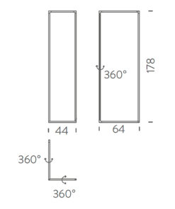 Questa versione da terra funziona come separé virtuale fra ambienti, mentre la versione a soffitto/parete permette di illuminare l’ambiente in modo versatile e confortevole.