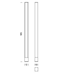 Lampada da terra composta da due pannelli verticali leggeri che nascondono la fonte luminosa grazie ad un effetto ottico. Struttura in alluminio estruso, terminali e base in pressofusione di alluminio, diffusori in metacrilato opalino e trasparente. La struttura è verniciata nei colori bianco opaco, nero opaco, grigio titanio e oro (solo per la versione da terra). La sorgente LED uplight crea una luce diffusa verso il soffitto, mentre il LED laterale genera una luce ambientale indiretta. Dotato di doppio dimmer per il controllo indipendente delle due sorgenti luminose.