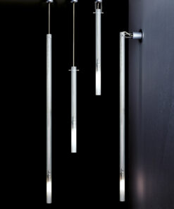 Famiglia di lampade da sospensione, parete e soffitto, realizzate con elementi tubolari per oggetti da un design forte ed essenziale che si esprime attraverso forme pure.