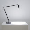 Famiglia di lampade da tavolo/terra e parete LED in estruso di alluminio verniciato nero opaco dotata di snodi per il posizionamento flessibile e dinamico della luce.