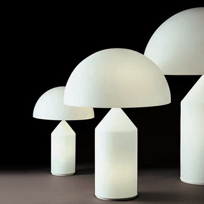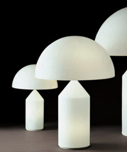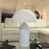Atollo famosa lampada da tavolo del brand Oluce, in vetro soffiato opale bianco altezza 35 cm.