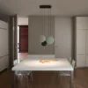 Lampada a sospensione dai volumi piatti e di diverse misure che creano un’illusione ottica di sfere in sospensione, creando una sensazione di galleggiamento nell’aria, una creazione di Lievore Altherr Molina. Cosmos, realizzate in diverse finiture: laccato marrone scuro opaco, verde opaco, grigio chiaro opaco e bianco opaco, e, dove l’uso della tecnologia LED è impercettibile grazie alla totale integrazione all’interno di ogni sfera che usa la luce per disegnare un’atmosfera fluttuante “come una costellazione di stelle”.