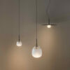 Lampada a sospensione Knit, sprigiona intimità, comfort e senso di familiarità. Il suo volume è rivestito in lycra elastica, tessuta a coste tramite la tecnica del plating. Le nervature più scure sono matte, tangibili, mentre lo spazio esistente tra le nervature è ricoperto da una sottile maglia che trasmette una luce diffusa a 360 gradi.