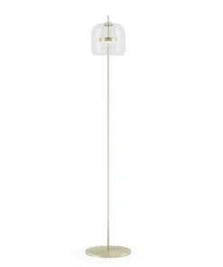 Lampada da terra dallo stile essenziale, fine ed elegante in vetro soffiato trasparente e finiture in metallo satinato