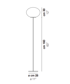 Lampada da terra dalla forma essenziale ma non scontata si inserisce bene in diversi contesti; la preziosità del vetro soffiato bianco satinato ovale, ne fa una lampada che si colloca ad un alto livello di qualità unita alla tradizione.